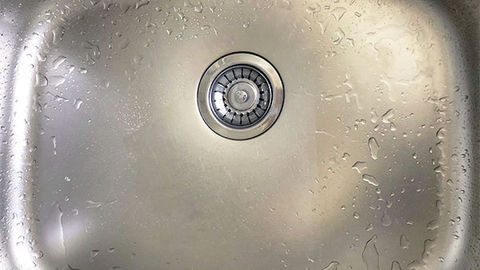 油汚れが付着すると、油は水に浮き混じりません。水の上を油汚れと水道水が流れます。